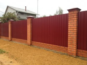 Данный металлический забор представляет собой ограждения, выполненные в виде готовых секций, с опорами или без, соединённых между собой. Этот способ очень надежный, также выглядит очень эстетично. Кирпич можно подобрать по цыету. Стоит еще сказать о жесткости этого забора, она на высшем уровне.